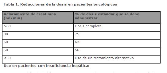 Reacciones secundarias y adversas: Datos preclínicos sobre seguridad: En estudios realizados se determinó que la DL50 por vía intraperitoneal era de 94 mg/kg para ratón y de 6 a 25 mg/kg para rata. La DL50 por vía oral en ratas era de 180 mg/kg. En ratones se observó que la tolerancia al metotrexato se incrementaba con la edad. En perros, la dosis de 50 mg/kg por vía intravenosa fue letal. El sistema hemolinfopoyético y el tracto gastrointestinal son las dos dianas principales tras una dosis única de metotrexato. Los efectos tóxicos tras la administración de dosis repetidas de metotrexato se estudiaron en ratones y en ratas. Los principales órganos diana del metotrexato en las especies animales mencionadas anteriormente fueron: el sistema hemolinfopoyético, el tracto gastrointestinal, pulmón, hígado, riñones, testículos y piel. La tolerancia de los ratones a dosis repetidas de metotrexato aumenta con la edad. Se ha evaluado el potencial carcinogénico de metotrexato en estudios con animales de experimentación, sin haberse obtenido resultados concluyentes. Aunque es evidente que metotrexato provoca daño cromosómico en células somáticas animales y células de médula ósea humana, la repercusión clínica de este hecho se desconoce. Reacciones adversas: La incidencia y gravedad de las reacciones adversas agudas está relacionada, por lo general, con la dosis y frecuencia de administración. Deben consultarse las secciones pertinentes cuando se busque información sobre las reacciones adversas con metotrexato. Las más descritas son: estomatitis ulcerosa, leucopenia, náuseas y malestar abdominal. Otras reacciones adversas descritas frecuentemente son malestar, cansancio no justificado, escalofríos y fiebre, mareos, y un descenso en la resistencia a las infecciones. Las ulceraciones de la mucosa oral son habitualmente los signos más tempranos de toxicidad. A continuación, se enumeran, por sistemas de clasificación de órganos y por frecuencia, otras reacciones adversas notificadas con metotrexato. En el ámbito oncológico, el tratamiento concomitante y la enfermedad subyacente dificultan la atribución específica de una reacción a metotrexato. Ver sección VII para una referencia específica a acontecimientos a largo plazo con relevancia médica, incluidos los que se producen tras un tratamiento a largo plazo o tras una acumulación de dosis elevadas (por ejemplo, hepatotoxicidad). Las categorías de la frecuencia se definen del modo siguiente: muy frecuentes (≥ 1/10), frecuentes (≥1/100 a < 1/10), poco frecuentes (≥ 1/1.000 a < 1/100), raras (≥1/10.000 a < 1/1.000), muy raras ( < 1/10.000), frecuencia no conocida (no puede estimarse a partir de los datos disponibles).