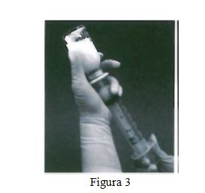 10. La dosis requerida puede retirarse invirtiendo el frasco y retirando lentamente el émbolo de la jeringa (Figura 3). Después de la reconstitución, cada ml de suspensión contiene 0.08 mg de mifamurtida. El volumen de la suspensión a ser eliminado de acuerdo con la dosis se calcula de la siguiente manera: